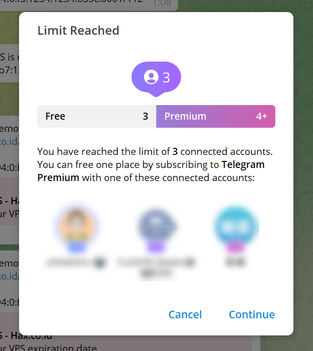 在PC上、iOS、Android上最多只能登录3个TG账户,再多就要买会员.